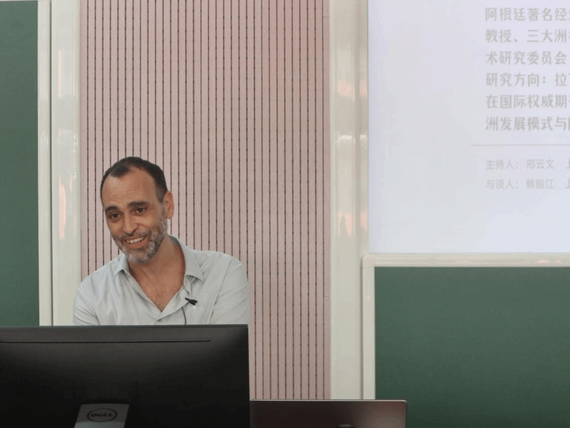 2025年10月17日,上海交通大学马克思主义学院成功举办“国际学术交流月”第二季第三期学术活动。本次活动特邀阿根廷著名经济学家、阿根廷国立拉普拉塔大学教授埃米利亚诺·洛佩斯(Emiliano López)担任主讲嘉宾,带来题为“历史视野中的拉丁美洲发展理论:从大萧条到21世纪全球变迁”的专题讲座。讲座由马克思主义学院院长邢云文主持,副院长韩振江担任与谈人。
