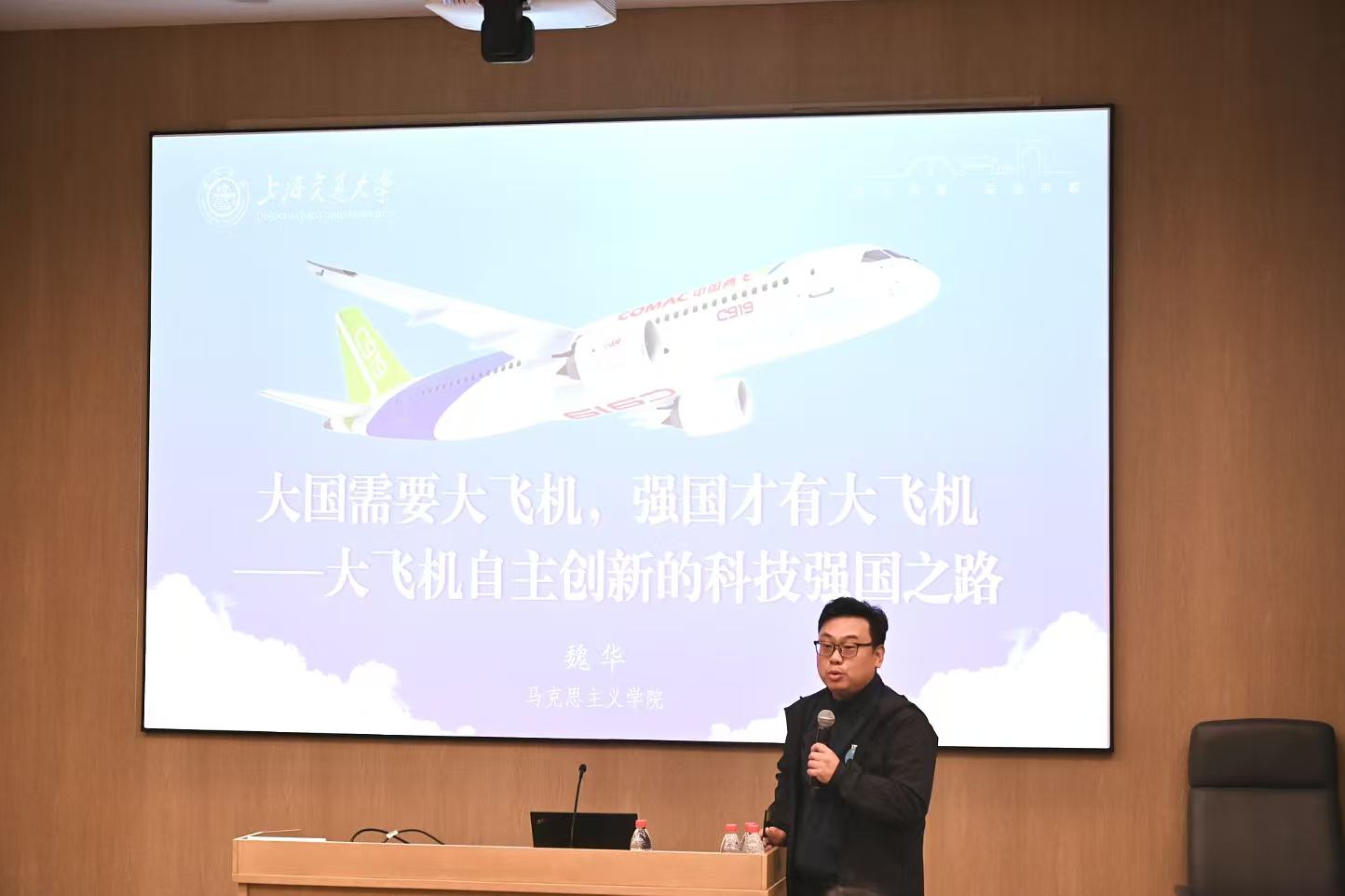 魏华以“大飞机自主创新的科技强国之路”为案例,介绍了“数智思政”建设成果。他表示马克思主义学院积极推进数智技术赋能思政课建设,着力打造虚拟仿真实验教学中心,建设高水平数智教育实践平台,着力构建以“AI+HI”为牵引的育人新范式。